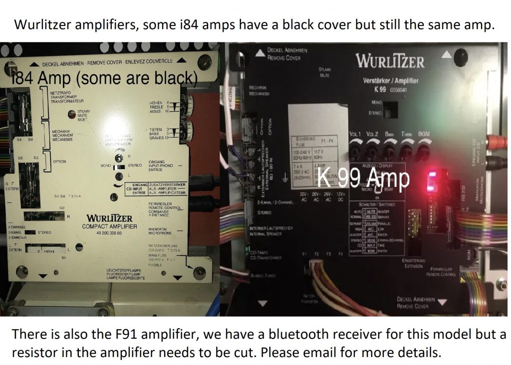 There are 3 main types of Amplifier on the Wurlitzer, please see the amp guide at the bottom of this page.
